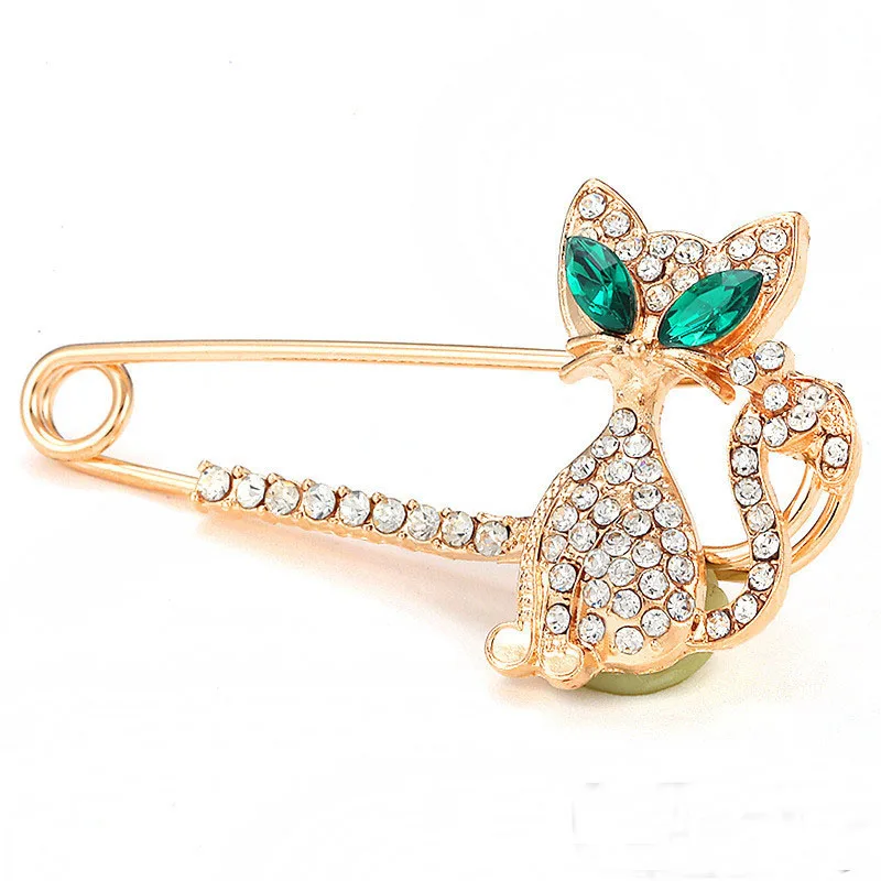 LNRRABC Fashion Women Gold Silver Color Rhinestone Crystal Green-eyes Cat Brooch lapel Pin Gift broches para as mulheres